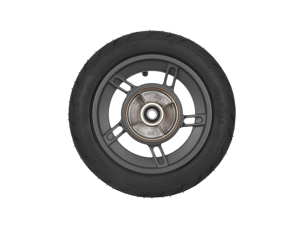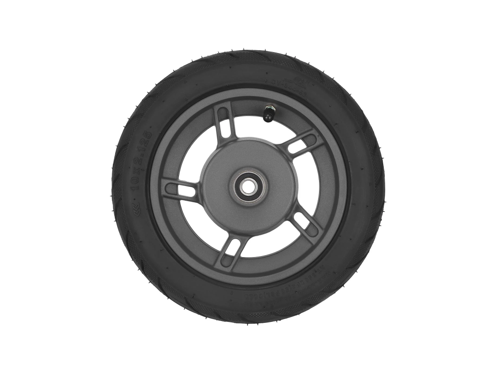Kompletné originálne predné koleso s ráfikom a pneumatikou 10x2.125 pre Xiaomi Electric Scooter 4 Lite (2nd Gen). Hliníkový ráfik zabezpečuje pevnosť a stabilitu pri jazde.