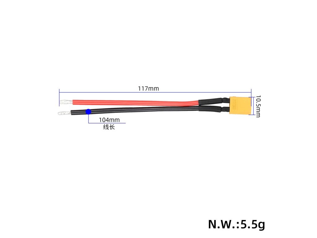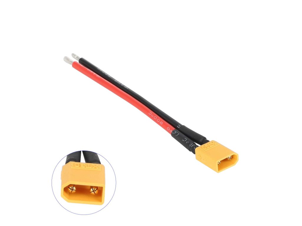 Prepojovací batériový kábel s konektorom XT60 (samec) a silikónovým vodičom 14 AWG v dĺžke 10 cm. Pocínované konce vodičov umožňujú jednoduché a spoľahlivé pripojenie v...