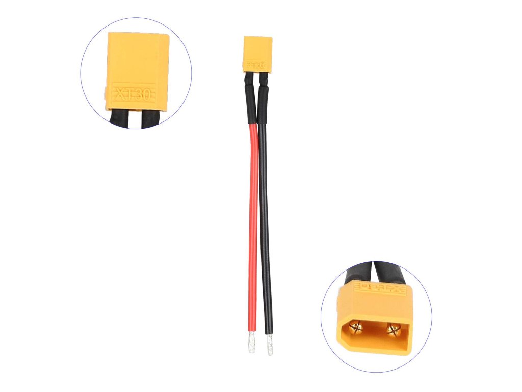 Konektor XT30 je určený pre stabilný prenos prúdu pri kompaktných rozmeroch. Poskytuje pevné spojenie a nízky prechodový odpor.