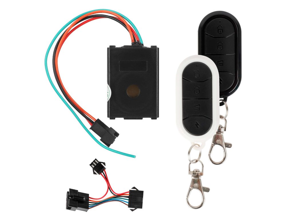 Alarm slúži na ochranu kolobežky pred krádežou. Aktivuje sa pomocou diaľkového ovládača.