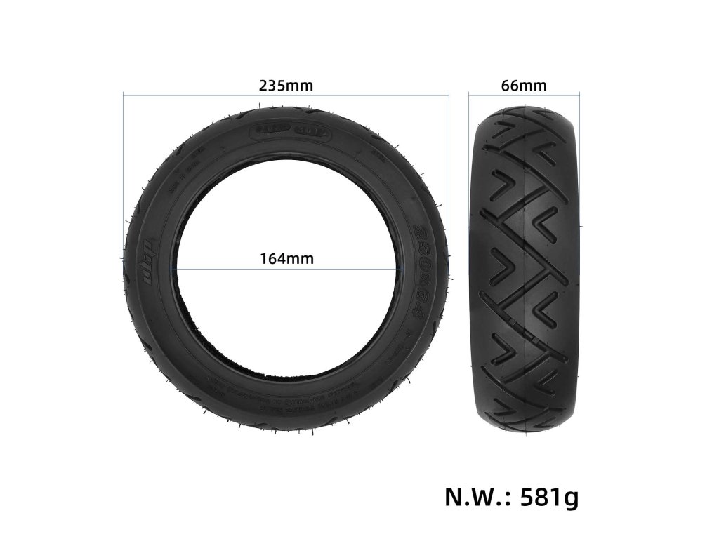 Plná terénna pneumatika 250×64 (10″) pre elektrické kolobežky Xiaomi Mi4 Ultra a NAVEE S65C. Bezdušové prevedenie odolné voči defektu.