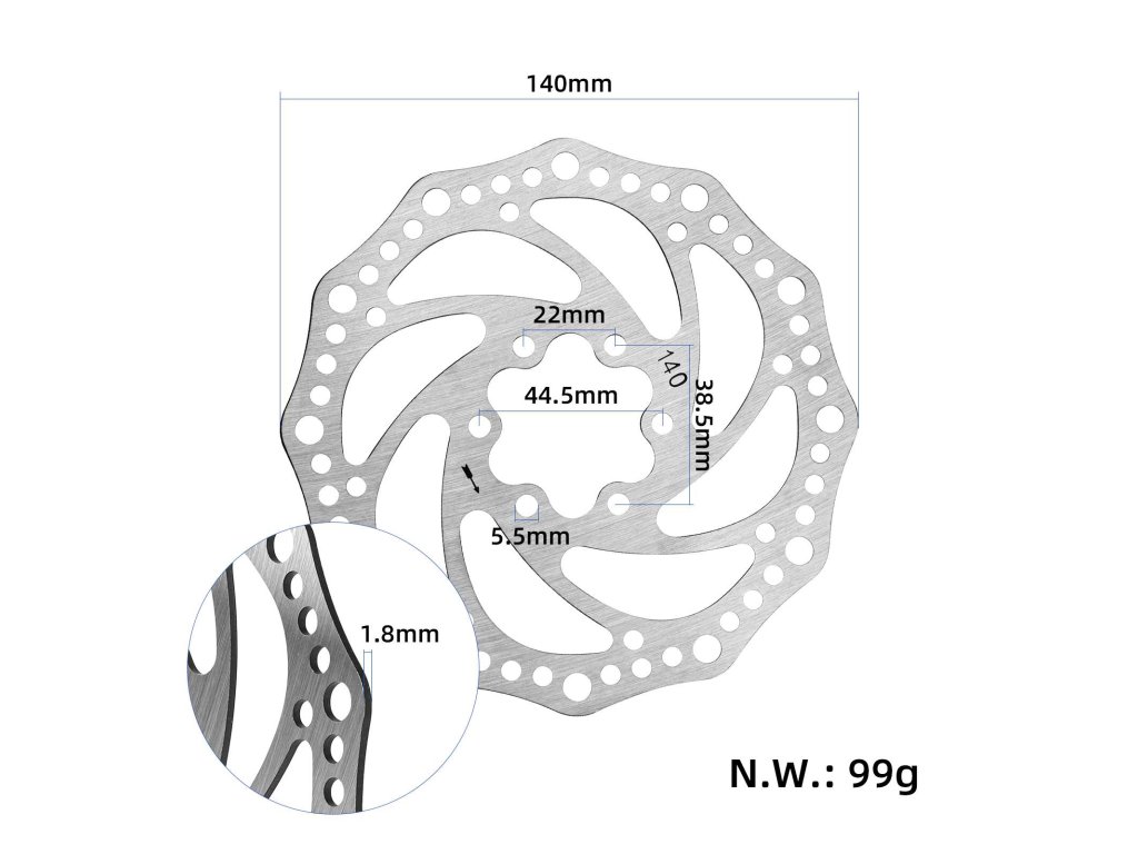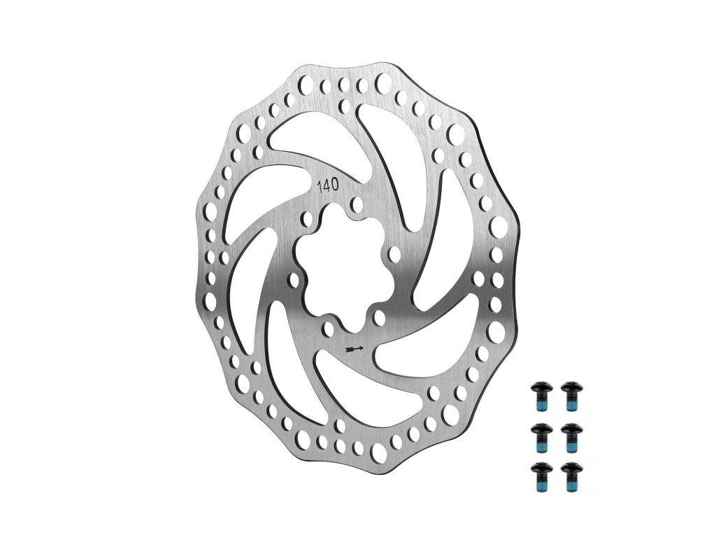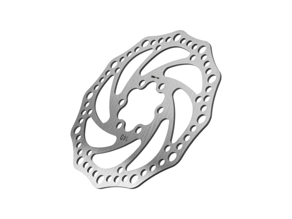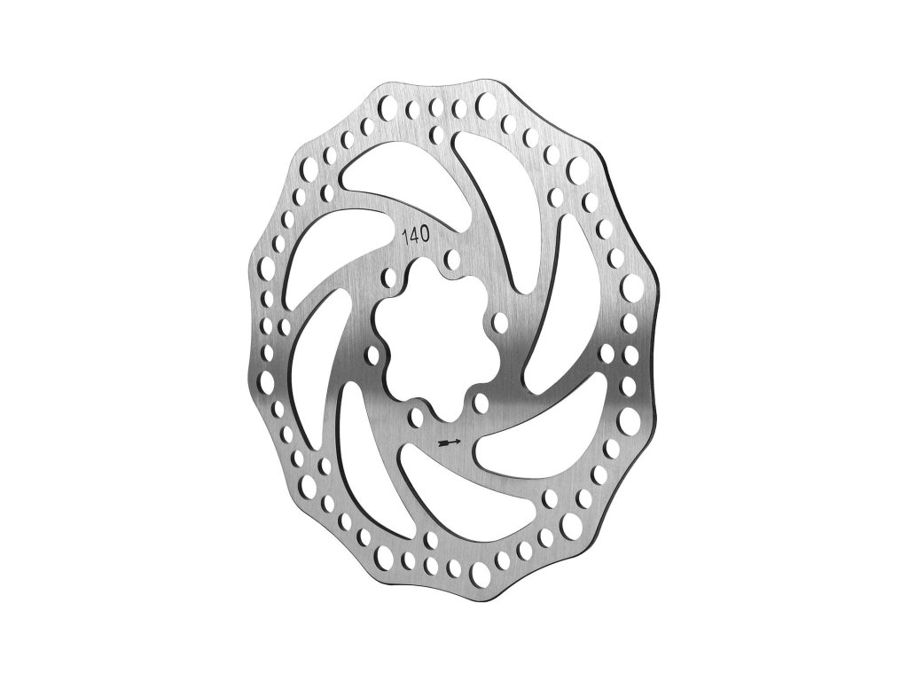 Brzdový kotúč s priemerom 140 mm je vhodný pre mestské aj rekreačné použitie. Kvetinový (wave) tvar zlepšuje samočistenie brzdnej plochy, znižuje prehrievanie a zabezpečuje stabilný brzdný účinok aj pri častejšom brzdení.