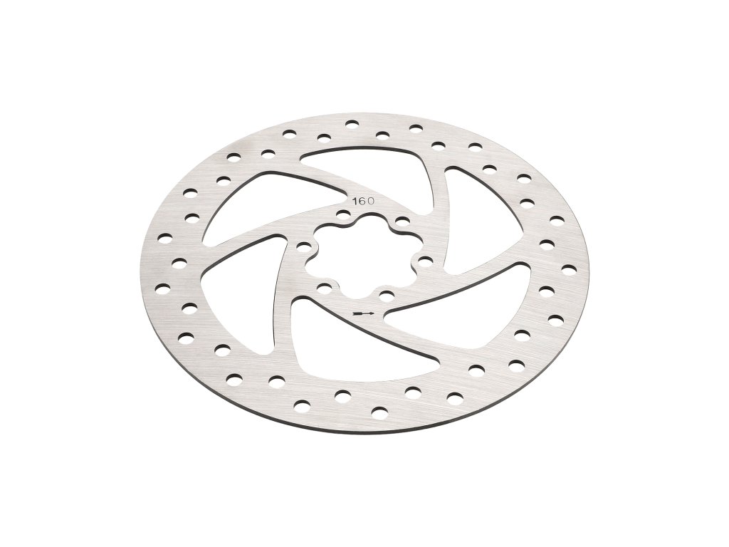 Univerzálny 160 mm brzdový kotúč so 6-dierovým uchytením pre elektrické kolobežky. Ideálny ako náhradný diel pre modely Kukirin G2 a G4 a ďalšie kompatibilné kolobežky.