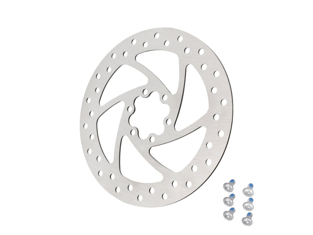 Kvalitný 140mm brzdový kotúč so 6-otvorovou montážou, vhodný pre elektrické kolobežky KuKirin aj ďalšie modely so štandardným uchytením. Poskytuje stabilný brzdný výkon, rýchle...