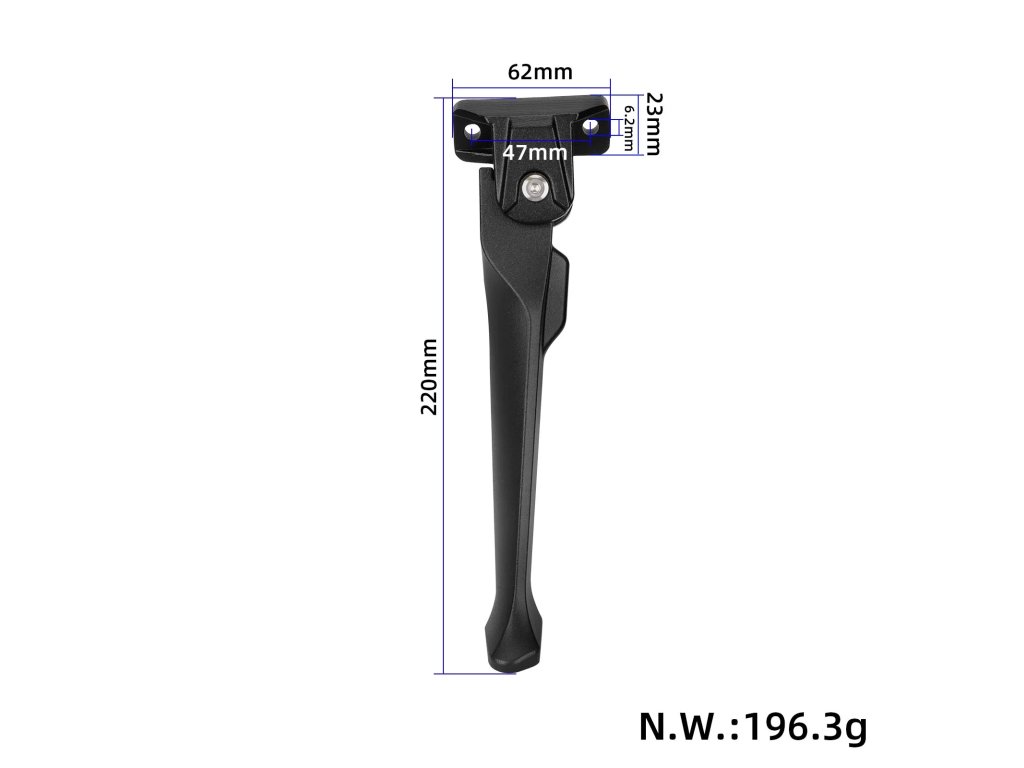 Stojan je určený ako náhradný diel pri poškodení alebo opotrebení pôvodného stojana. Po montáži umožní bezpečné odstavenie kolobežky doma, v práci alebo na verejných miestach.