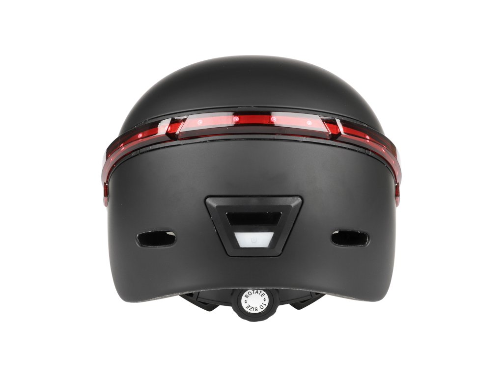 Ochranná prilba pre dospelých s integrovaným predným a zadným LED svetlom pre lepšiu viditeľnosť.