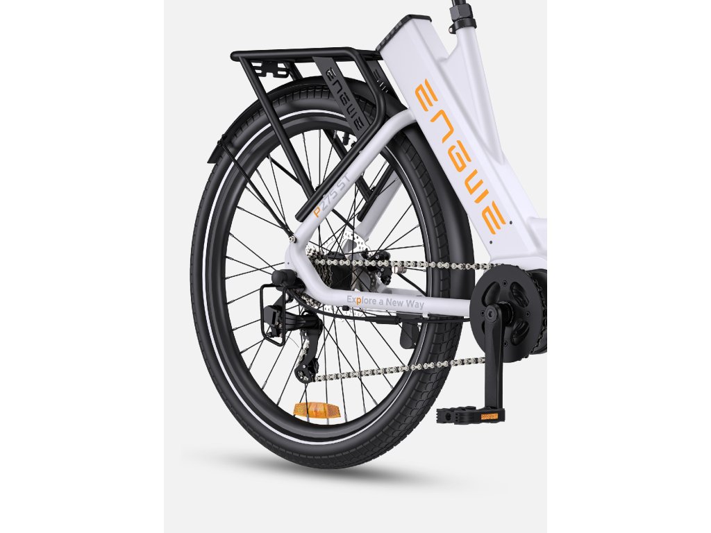 27,5-palcové*2,4 tenké mestské pneumatiky, ktoré sú protišmykové, odolné voči opotrebovaniu a majú hladký profil v zákrutách, aby poskytovali vyššiu rýchlosť na ceste. S vysoko reflexnými pásikmi pre zvýšenie viditeľnosti za zhoršených svetelných podmienok. Vybavené blatníkmi na ochranu vás a vášho oblečenia a zadným nosičom na prenášanie vašich základných vecí.