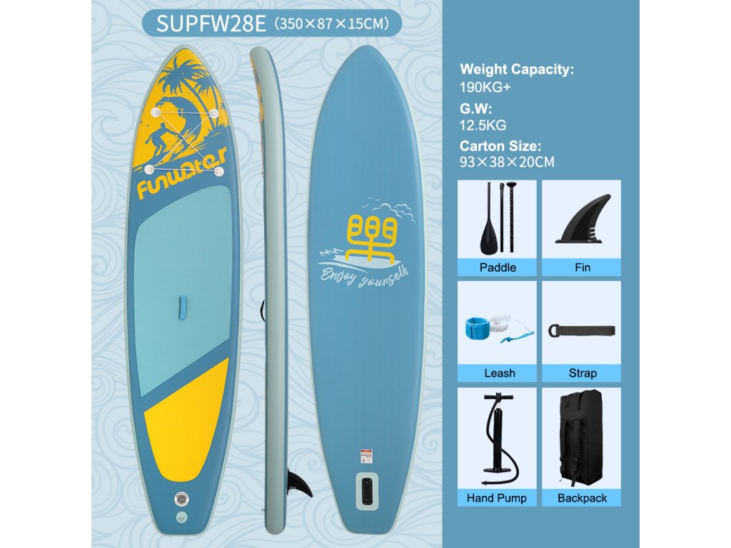 Funwater Grey350 je nafukovací Stand Up Paddle Board navrhnutý pre všetkých, ktorí hľadajú spoľahlivý a kvalitný SUP na rôzne vodné aktivity. Vďaka svojej robustnej konštrukcii a nosnosti až 190 kg ponúka stabilitu a bezpečnosť aj pri dlhších výletoch na vode.
