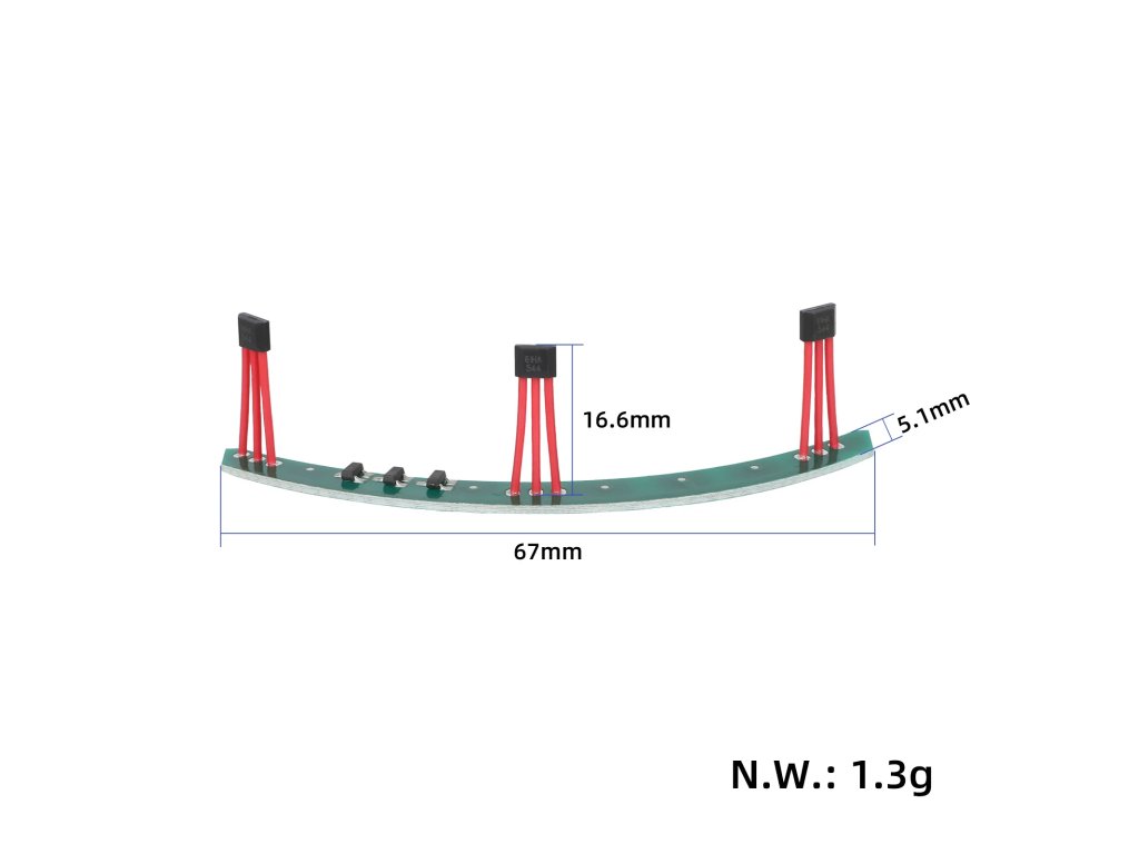 Univerzálny hall senzor motora s PCB doskou a káblom pre elektrické kolobežky a e-biky. Uhol snímania 60° zabezpečuje presné riadenie bezkefového motora.