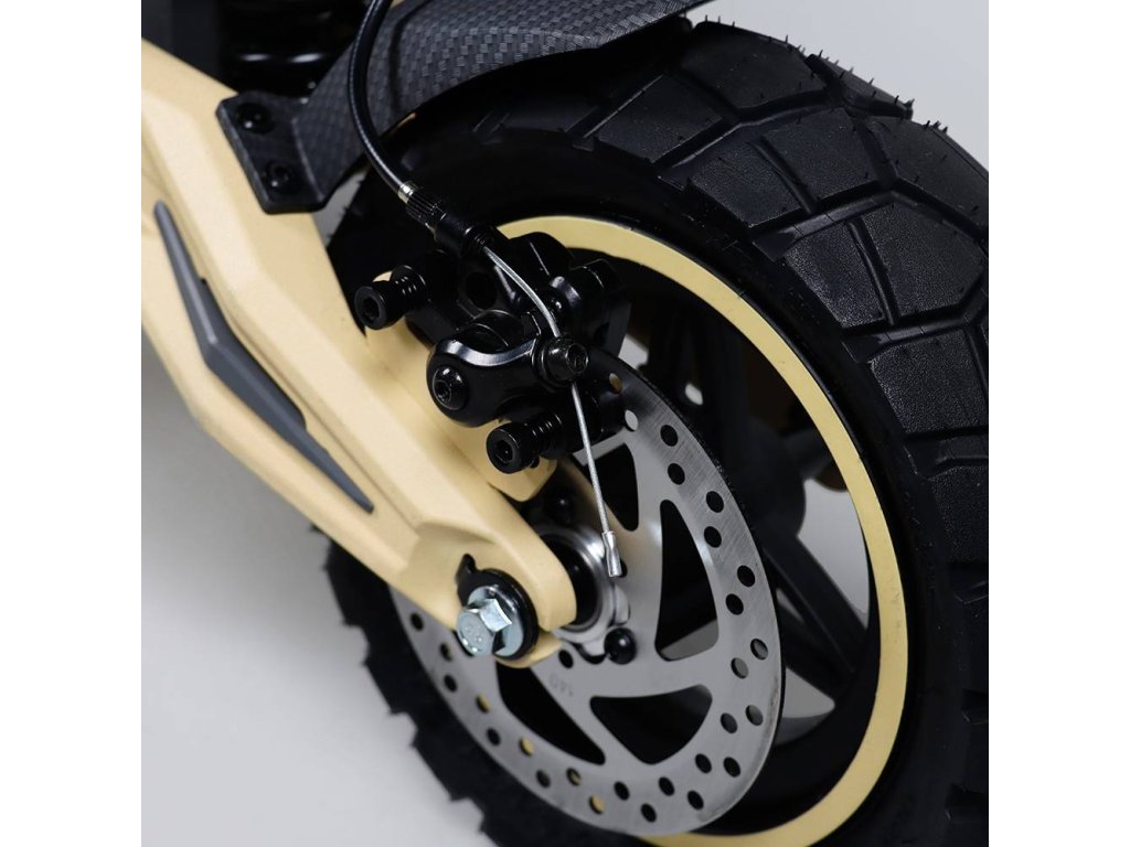Kolobežka je vybavená vákuovými terénnymi pneumatikami odolnými proti výbuchu. Tieto pneumatiky poskytujú vynikajúce tlmenie nárazov a silnú priľnavosť na rôznych povrchoch.