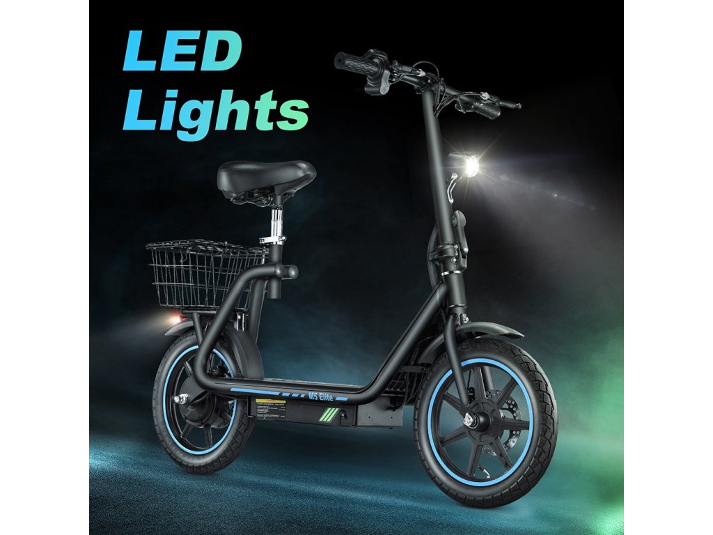 Skladacia e-kolobežka je vybavená vysoko svietivými LED svetlami pre predné osvetlenie + pripomínačom klaksónu + zadným svetlom s výstražným svetlom, ktoré v noci blikajú, vďaka čomu je nočná jazda bezpečnejšia