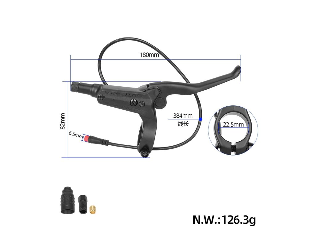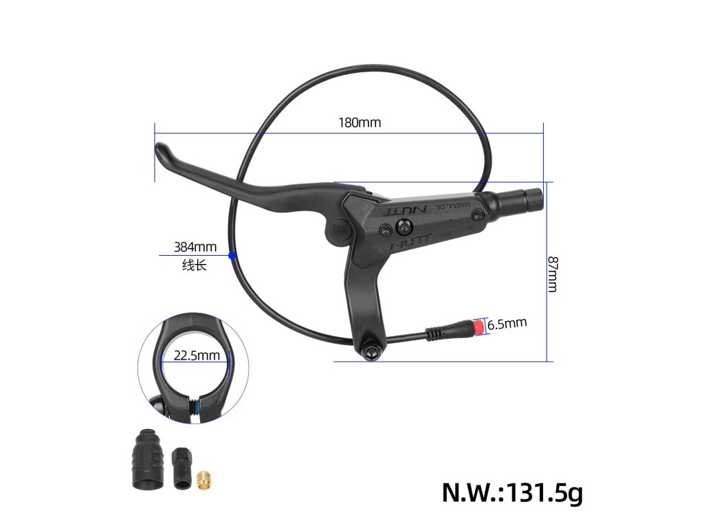 Originálna pravá hydraulická brzdová páčka NUTT Y5 s automatickou funkciou vypnutia motoru a 380 mm vodotesným 2-žilovým káblom. Určená pre elektrické kolobežky a bicykle s...