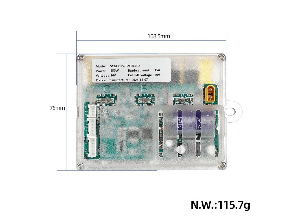 Sada zabezpečuje riadenie motora, komunikáciu s displejom a správnu funkciu kolobežky.