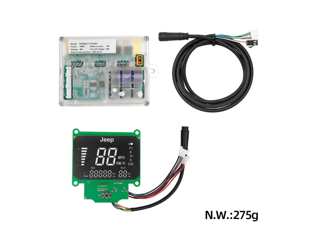 Sada je určená pre elektrické kolobežky značky Jeep s výkonom 550W a napätím 36V. Slúži ako náhrada poškodeného alebo nefunkčného riadiaceho systému.