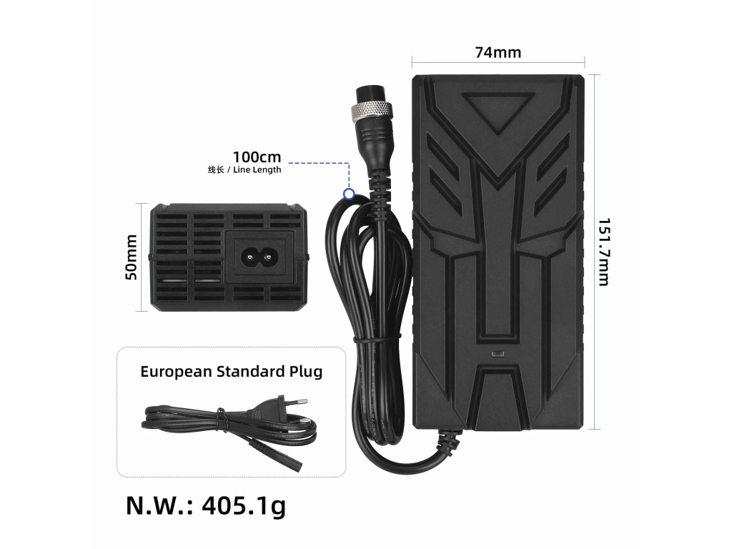 Spoľahlivá nabíjačka 54.6V 2A s 3-pinovým konektorom a európskou zástrčkou, kompatibilná s elektrickými kolobežkami Kugoo M4. Poskytuje stabilné, rýchle a bezpečné nabíjanie...
