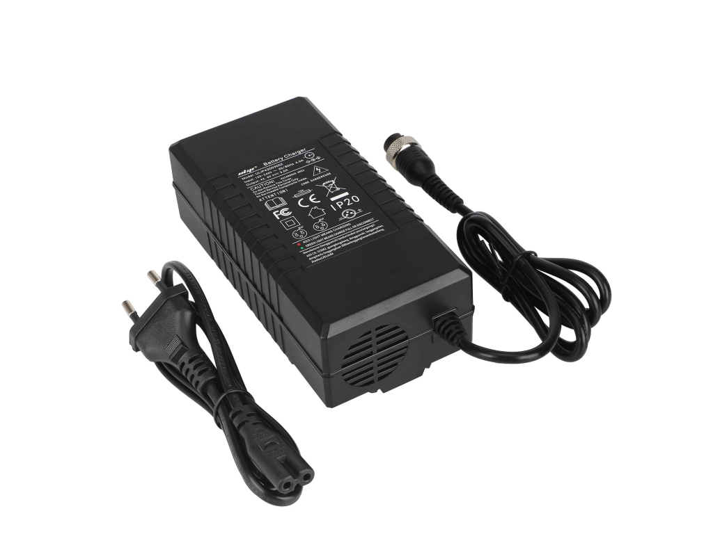 Spoľahlivá nabíjačka pre 48V (13S) lítium-iónové batérie s výstupom 54,6V a prúdom 3A. Vybavená DC 2.1 konektorom, aktívnym chladením a bezpečnostnými ochranami.
