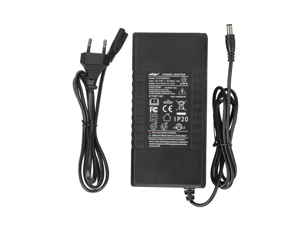 Nabíjačka 54,6V / 2A určená pre 48V (13S) lítiové batérie, vybavená MI (Xiaomi typ) konektorom, aktívnym chladením ventilátorom a EU zástrčkou. Vhodná pre elektrické kolobežky a...