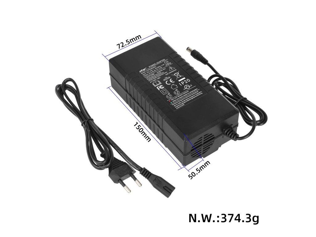 Výkonná nabíjačka 58.8V / 3A určená pre 52V lítiové batérie elektrických kolobežiek a elektrických vozidiel. Vybavená okrúhlym konektorom DC 5.5×2.1 mm (5521) a európskou...