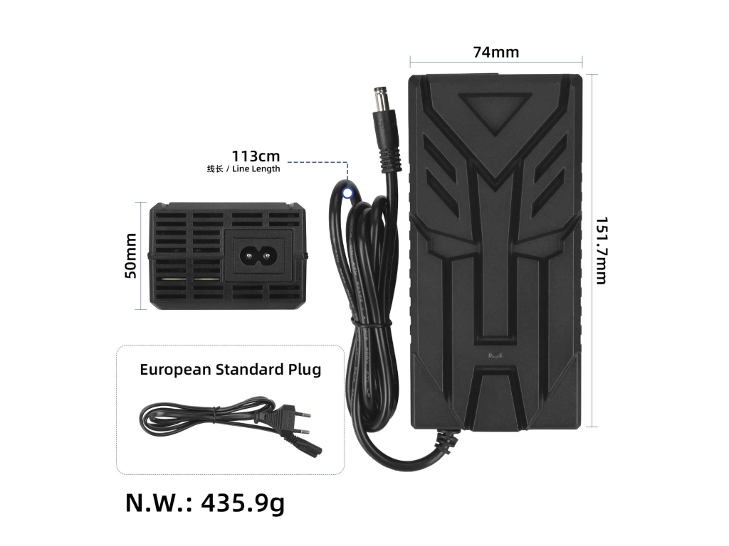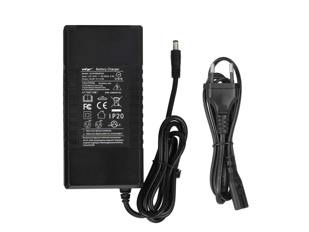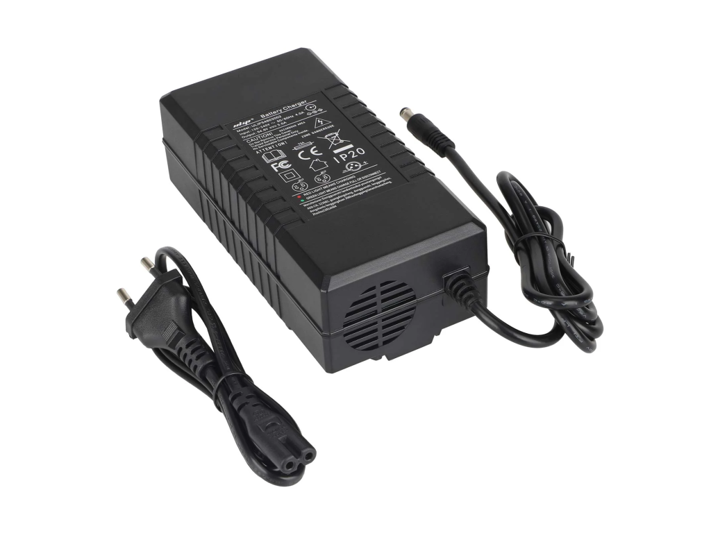 Certifikovaná nabíjačka 54.6V 3A s EU koncovkou pre 48V (13S) lítiové batérie. Vhodná pre elektrické kolobežky a podobné vozidlá.
