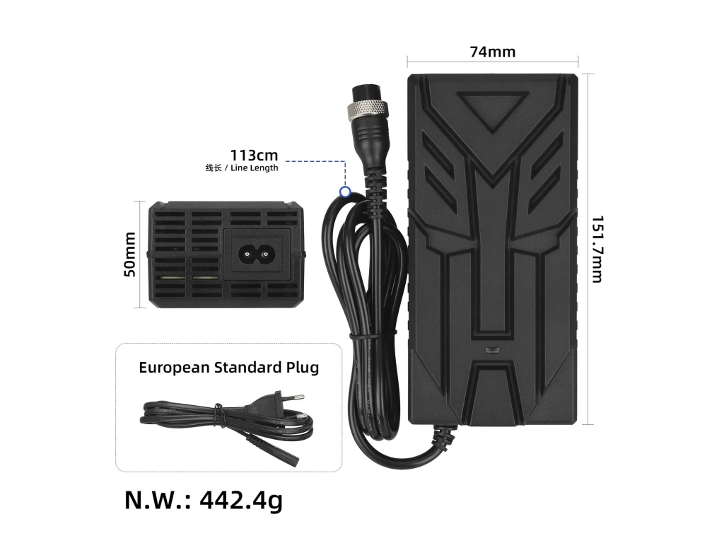 Nabíjačka 54.6V / 2A určená pre 48V lítiové batérie, vybavená MI konektorom a EU zástrčkou - HRUBÝ KONEKTOR. Vhodná pre elektrobicykle ENGWE EP-2 Pro a ďalšie elektrické bicykle...