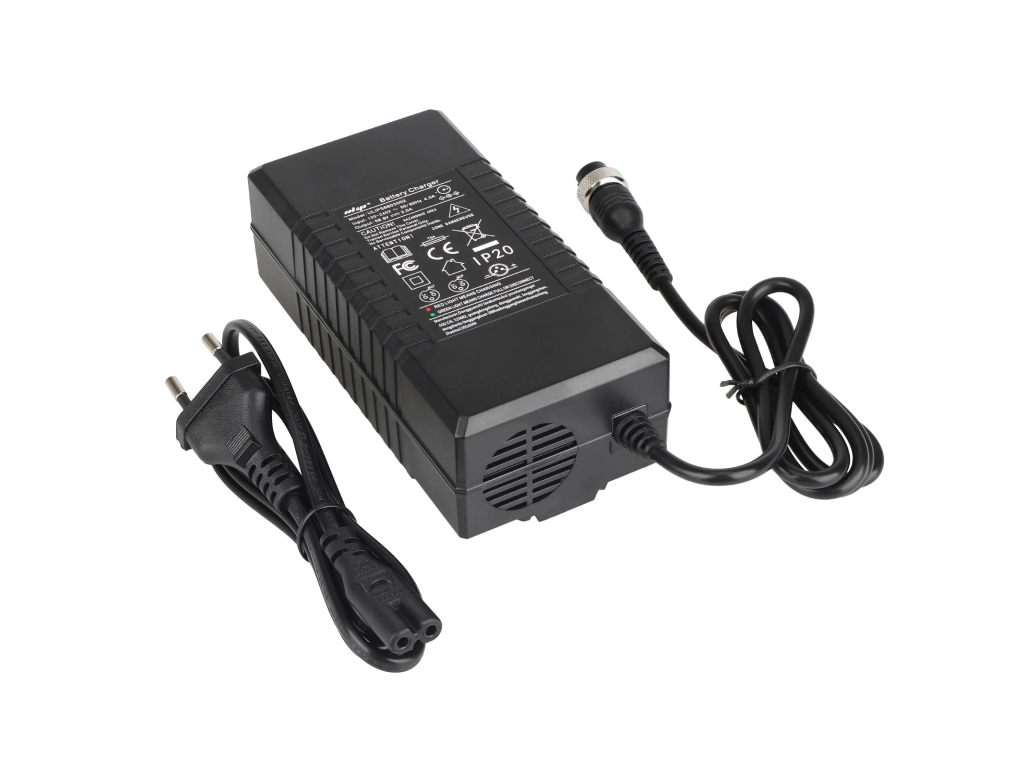 Kompaktná nabíjačka pre Li-ion batérie 48V a 52V s výstupom 54,6V / 58,8V a prúdom 2A. Vybavená 3-pin konektorom, EU zástrčkou a aktívnym chladením pre bezpečné a stabilné...