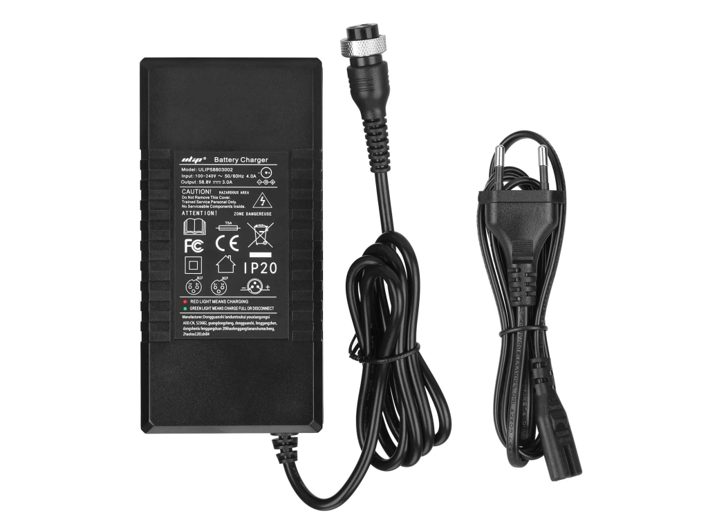 Nabíjačka 58.8V / 2A s malým konektorom LP16-3P (Small Eight / Ming head) a európskou zástrčkou. Určená na bezpečné a stabilné nabíjanie lítiových batérií elektrických...