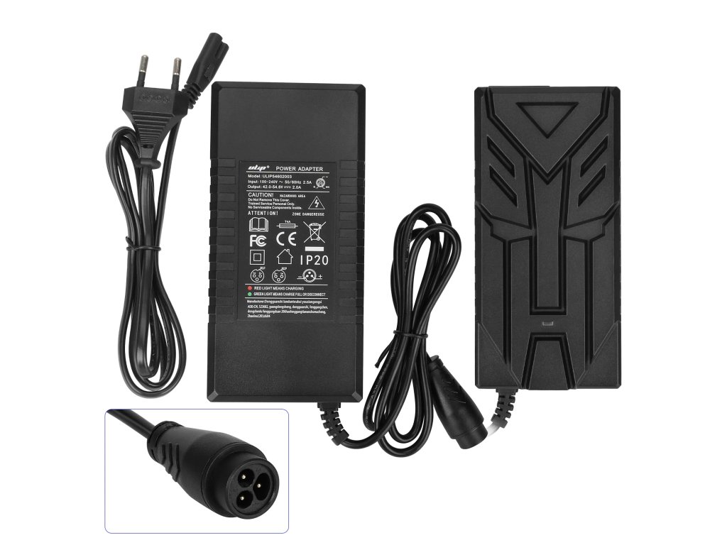 Nabíjačka 54,6V / 2A určená pre 48V (13S) lítiové batérie, vybavená MI (Xiaomi typ) konektorom, aktívnym chladením ventilátorom a EU zástrčkou. Vhodná pre elektrické kolobežky a...