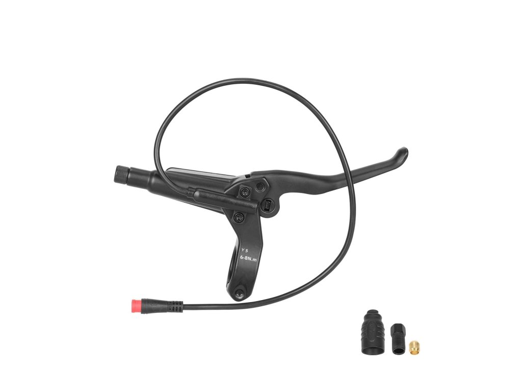Táto ľavá brzdová páčka NUTT Y5 je určená pre hydraulické kotúčové brzdy a poskytuje presné, plynulé a spoľahlivé brzdenie. Vďaka integrovanej funkcii automatického vypnutia motoru (power-off) sa pri brzdení okamžite preruší prívod výkonu, čím sa výrazne zvyšuje bezpečnosť jazdy.