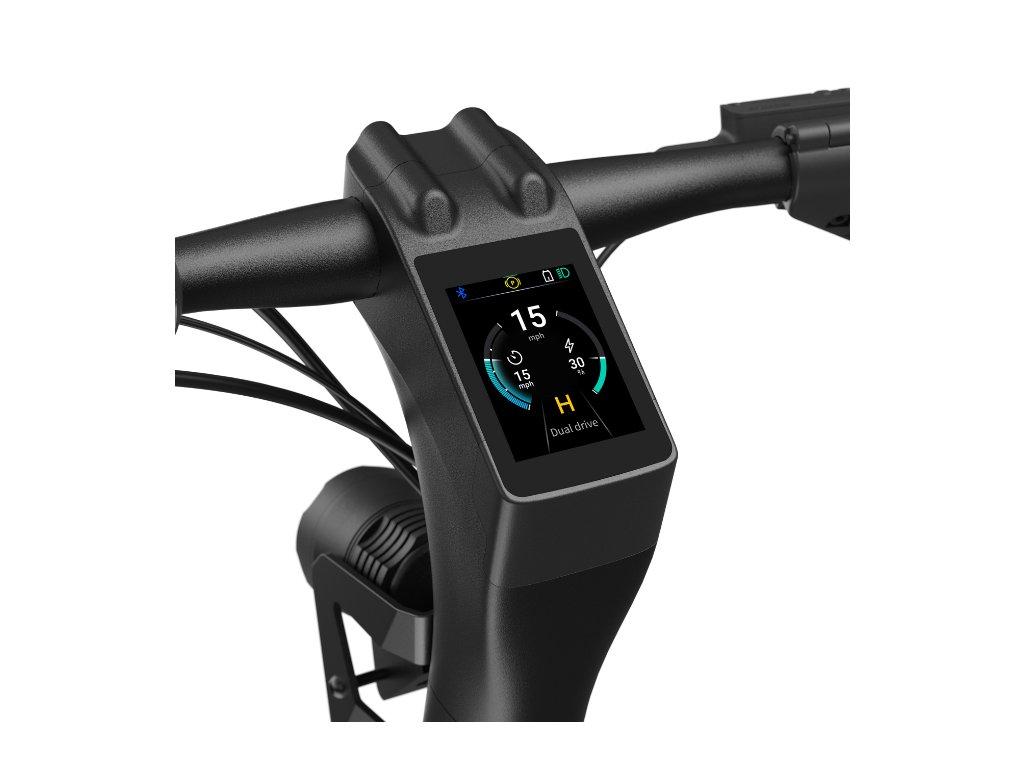 Kolobežka je vybavená prednými a zadnými kotúčovými brzdami spolu s elektronickým brzdovým systémom, čo poskytuje spoľahlivé a rýchle zastavenie aj pri vysokých rýchlostiach. Integrovaný LCD displej ponúka všetky potrebné údaje v reálnom čase – rýchlosť, stav batérie a aktuálny režim jazdy.