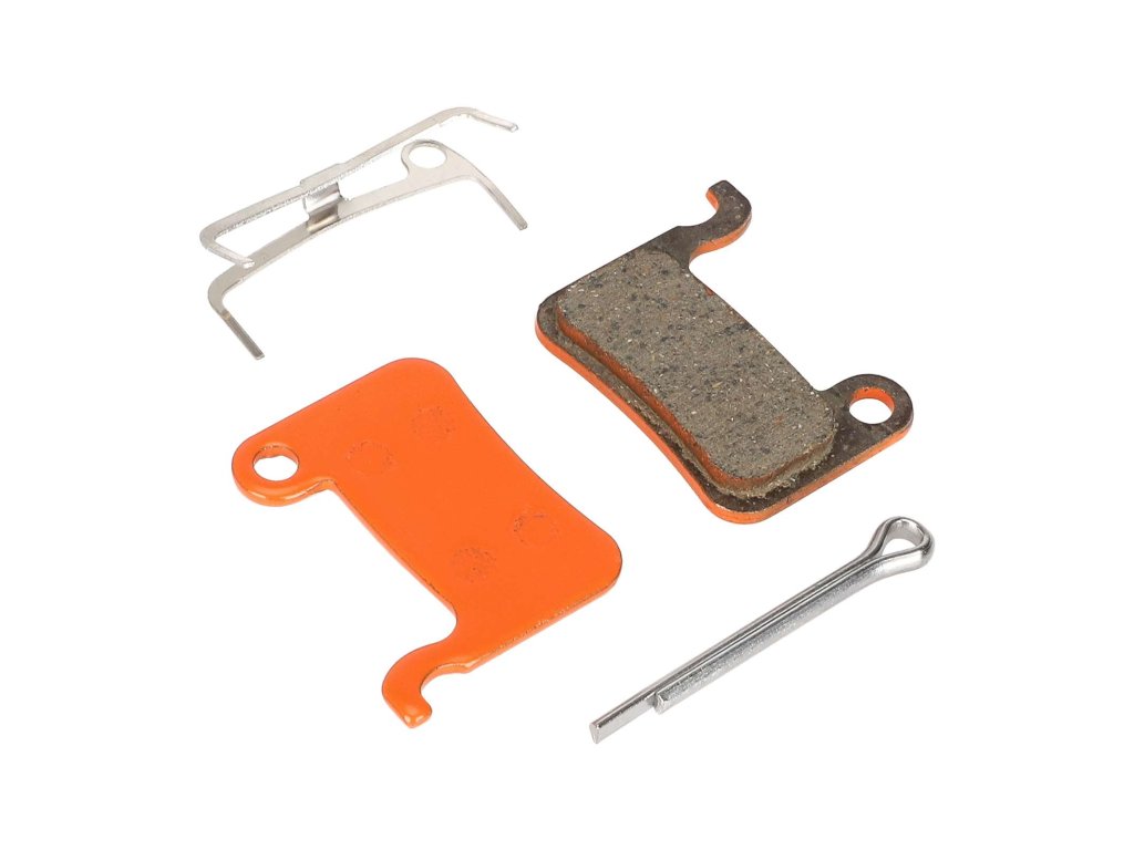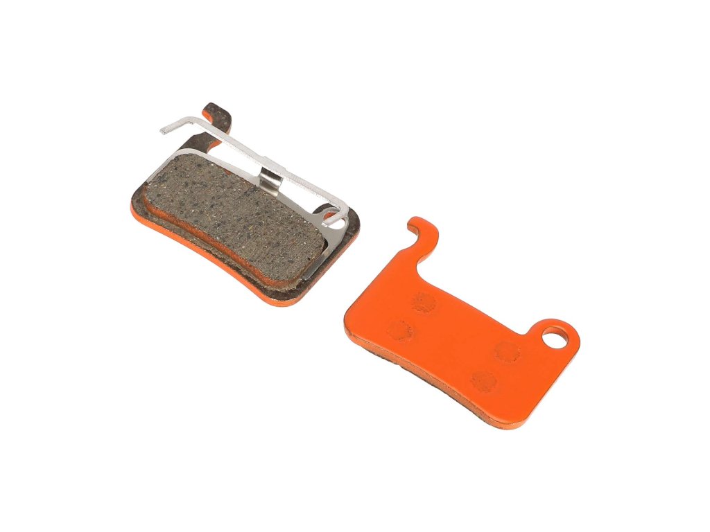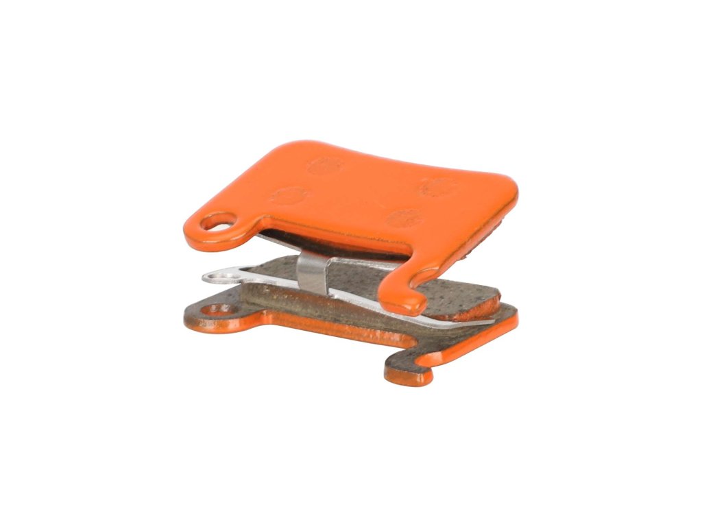 Oranžové keramické brzdové platničky určené pre kotúčové brzdy elektrickej kolobežky Kugoo G2 Pro a bicyklov. Ponúkajú tiché brzdenie, stabilný výkon a nižšie opotrebenie kotúča.