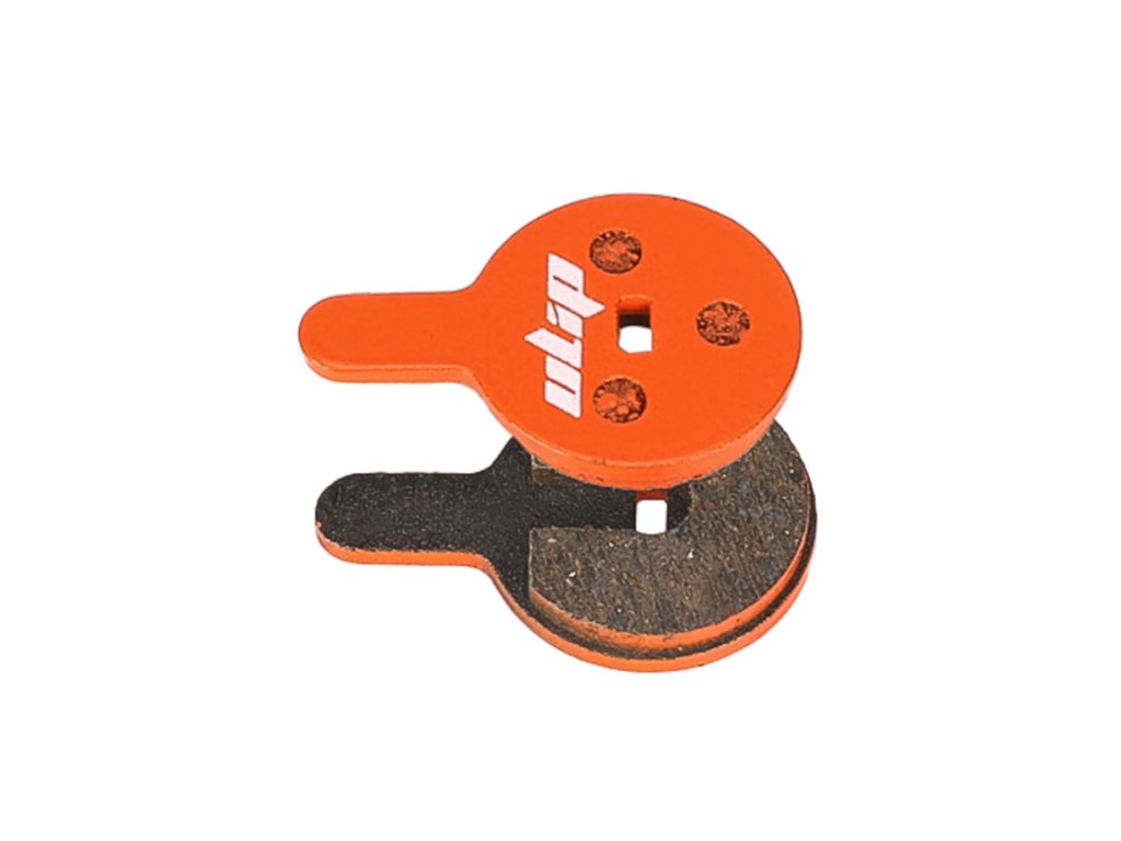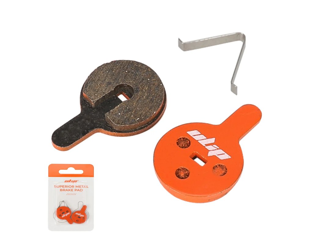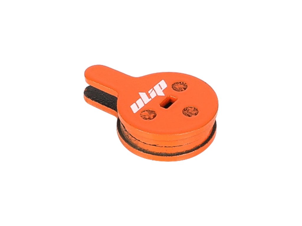 Oranžové keramické brzdové platničky určené pre kotúčové brzdy elektrickej kolobežky Kugoo G2 Pro a bicyklov. Ponúkajú tiché brzdenie, stabilný výkon a nižšie opotrebenie kotúča.