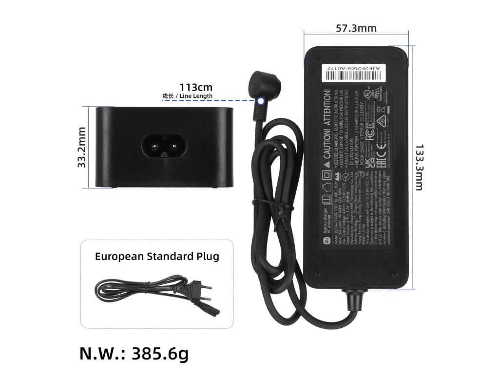 Originálna nabíjačka 54.6 V 1.3 A (EU) s konektorom Xiaomi O je určená pre elektrické kolobežky Xiaomi 4 Pro Plus, Xiaomi 4 Pro Max a kompatibilné modely Segway Ninebot G3, F3,...