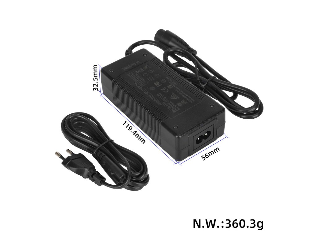 Univerzálna nabíjačka pre elektrické kolobežky a vozidlá s lítiovou batériou. Podporuje systémy 36V (výstup 42V) a 42V, má okrúhly konektor GX16 s 3 pinmi (16 mm) a EU sieťovú...