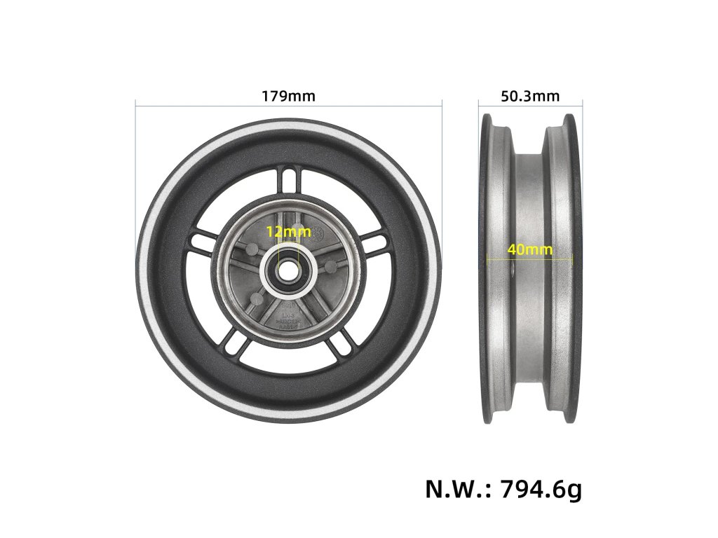Kovový ráfik kolesa určený pre elektrické kolobežky Xiaomi M365 a 1S. Pevné oceľové prevedenie s krátkou osou je vhodné ako náhradný diel pri poškodení pôvodného disku a...