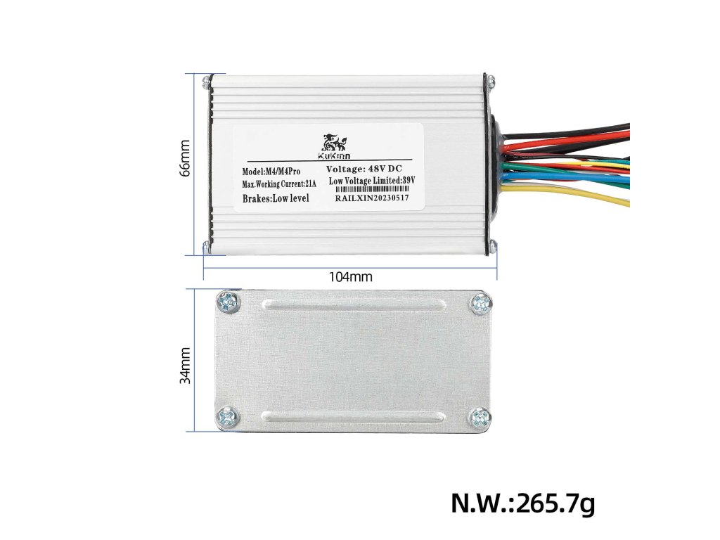 Riadiaci modul je navrhnutý pre systémy s napätím 48 V a maximálnym prúdom 21 A. Táto konfigurácia zabezpečuje správnu spoluprácu s motorom a batériou modelov M4 a M4 Pro bez preťažovania elektroniky.