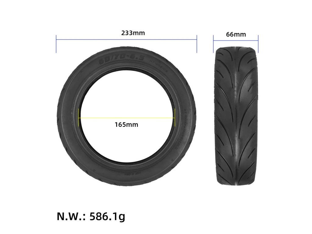 Cestná bezdušová pneumatika 10×2.70-6.5 pre výkonné elektrické kolobežky Dualtron 3 a Speedway 5. Poskytuje dobrú stabilitu, priľnavosť a komfort jazdy.