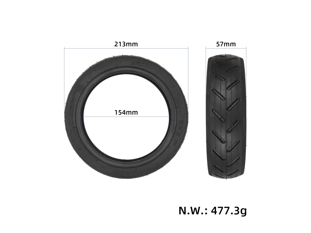 Odolná pevná pneumatika 9x3.0–5.5 pre nový model Kukirin G2 Pro 2024. Ponúka výbornú priľnavosť, anti-skid dezén, dlhú životnosť a nulové riziko defektu.