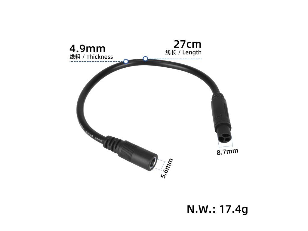 Adaptérový kábel na konverziu konektora DC 5.5×2.1 mm na DC 5.5×2.5 mm. Určený pre nabíjanie elektrických kolobežiek, elektrobicyklov a ďalších zariadení s odlišným typom DC...