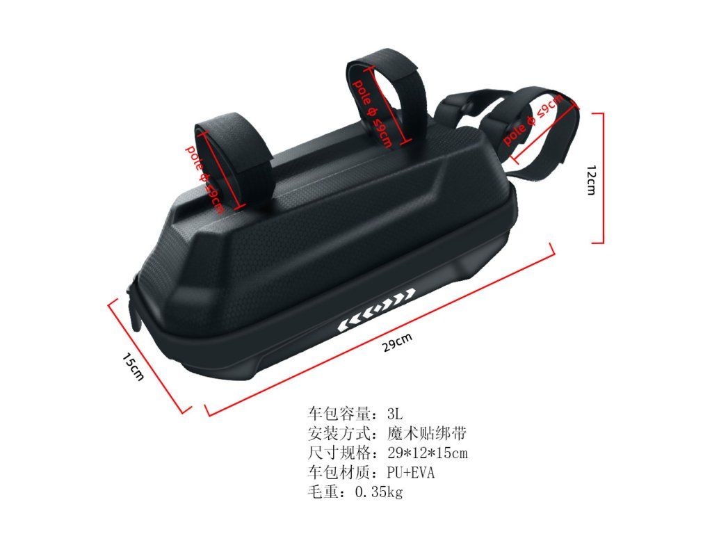 Pevná predná taška 2.5L z EVA materiálu pre elektrické kolobežky a bicykle. Vodotesné prevedenie s reflexnými prvkami.