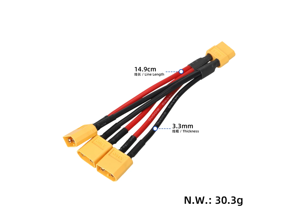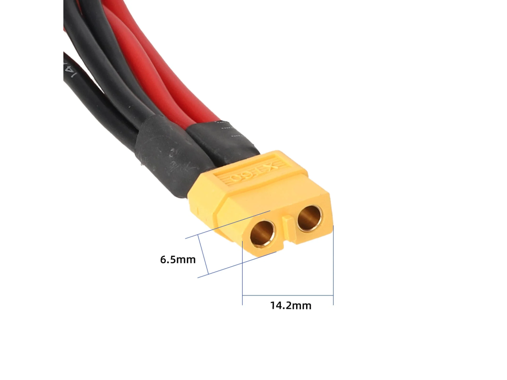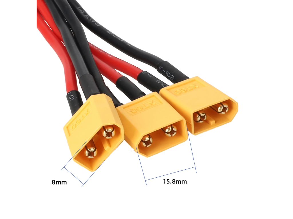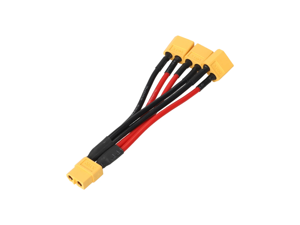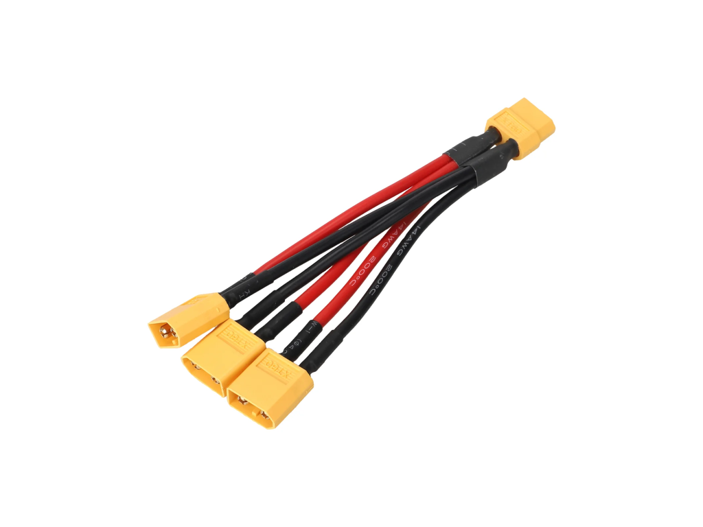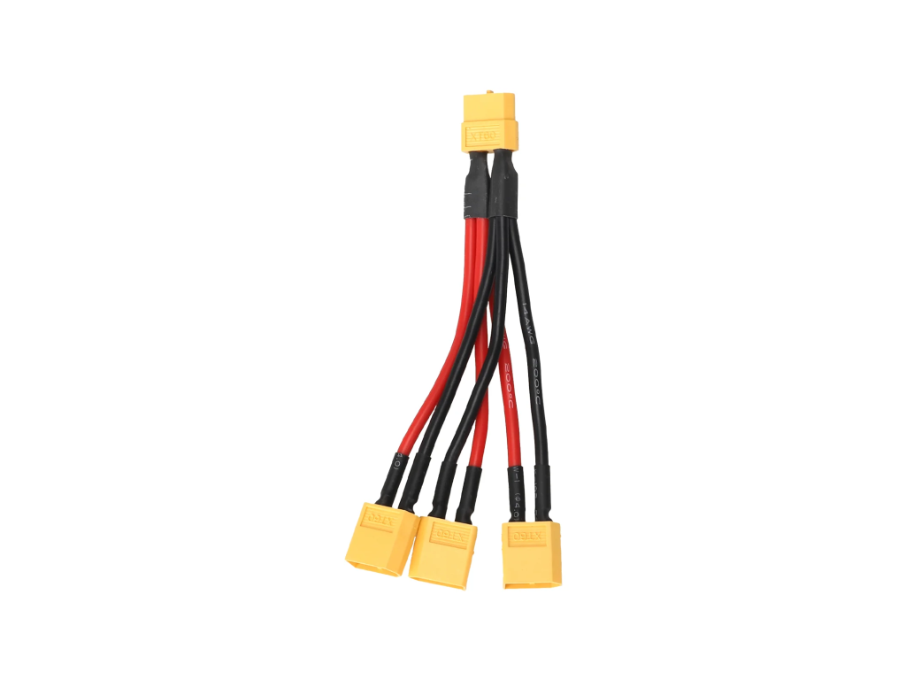 - Konektory: 1× XT60 samica → 3× XT60 samec