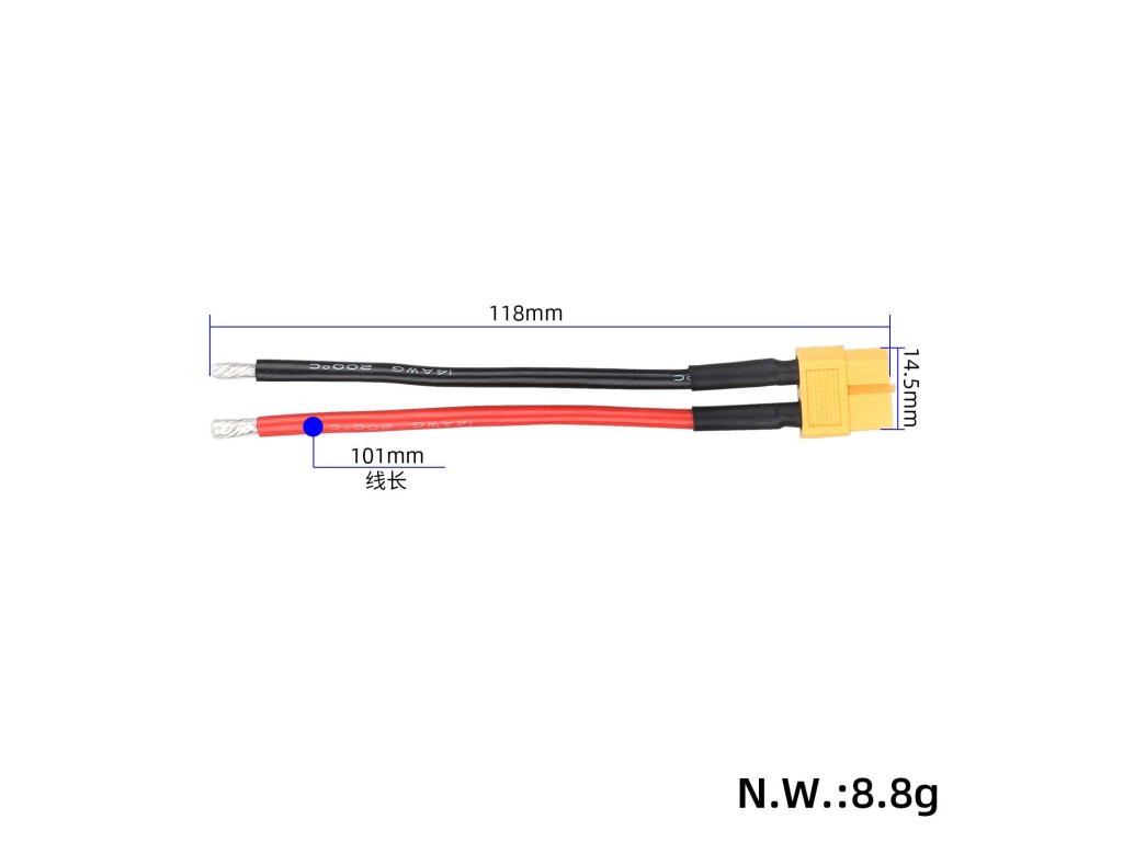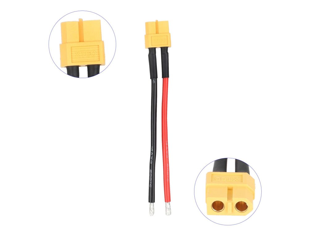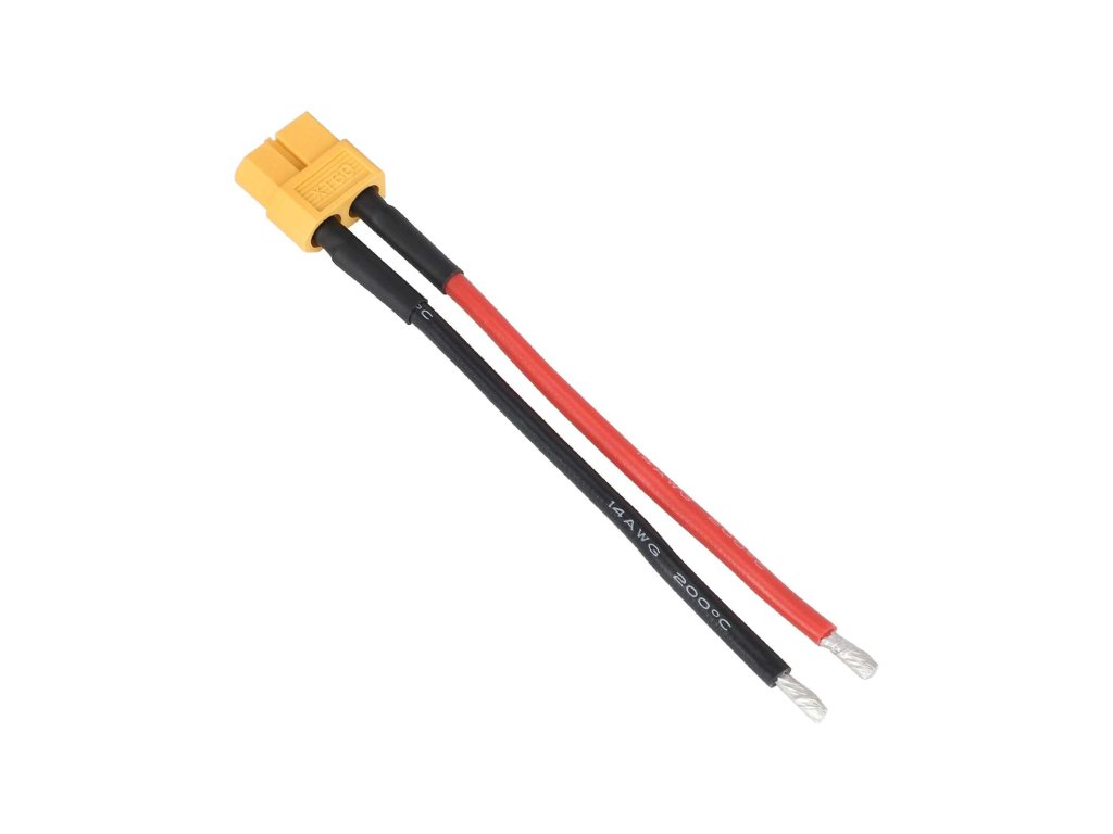 Prepojovací batériový kábel s konektorom XT60 (samec) a silikónovým vodičom 14 AWG v dĺžke 10 cm. Pocínované konce vodičov umožňujú jednoduché a spoľahlivé pripojenie v...