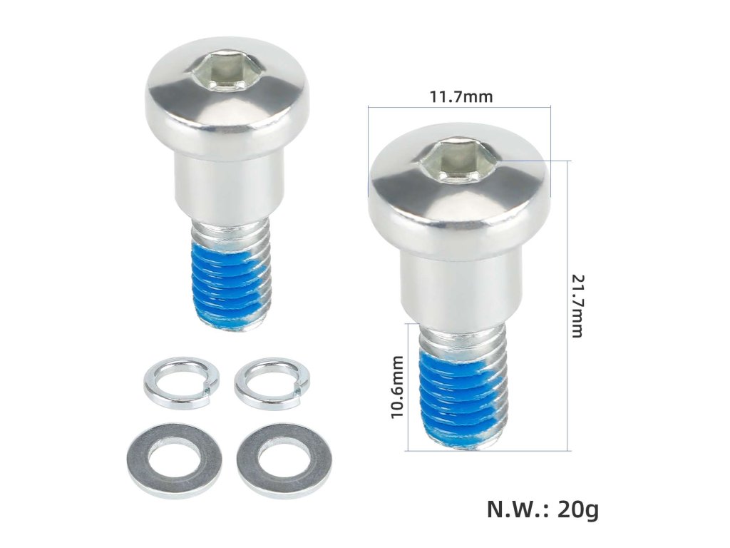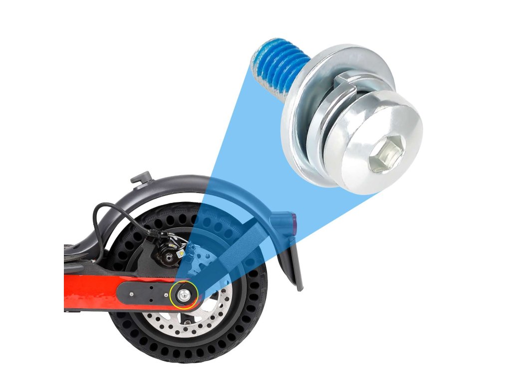 Fixačné skrutky slúžia na bezpečné a stabilné uchytenie zadného kolesa ku konštrukcii kolobežky. Zabezpečujú správnu fixáciu osi a minimalizujú vôľu počas jazdy.
