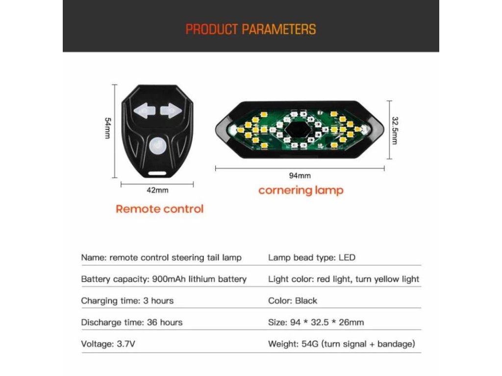 Sada 4 červených nabíjateľných LED smerových svetiel s diaľkovým ovládaním, vhodná pre elektrické kolobežky, bicykle a e-biky. Vodotesné prevedenie, vysoká svietivosť a...