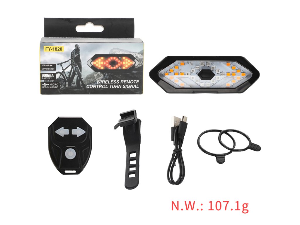 Zadné svetlo na bicykel s diaľkovým ovládaním, smerovkami a klaksónom