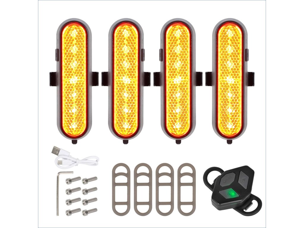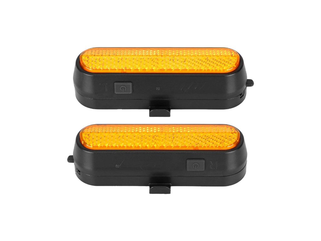 Táto sada obsahuje 4 žlté LED smerové svetlá, ktoré slúžia na jasnú a zrozumiteľnú signalizáciu smeru jazdy. Svetlá sú ovládané pomocou diaľkového ovládača, vďaka čomu môže jazdec bezpečne signalizovať bez pustenia riadidiel.